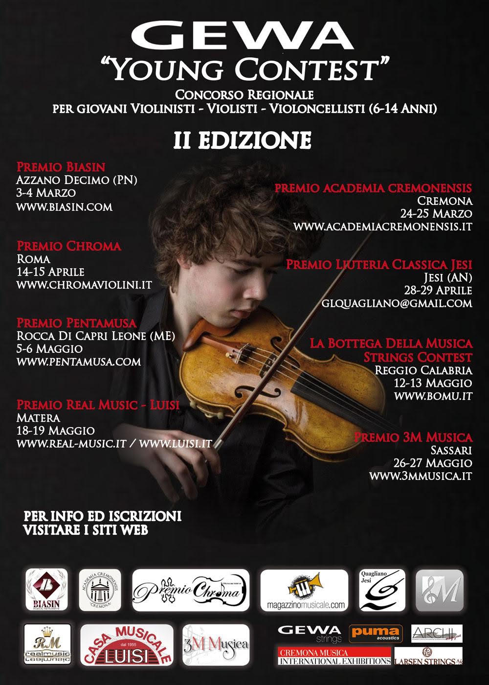 Nei concorsi regionali saranno assegnati ulteriori premi messi in palio da Gewa Music, come borse e astucci, mute di corde Larsen Strings e abbonamenti alla rivista specializzata ARCHI Magazine.
